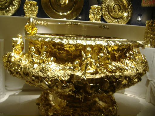 The other main attraction at the Tower of London is the Crown Jewels. On this trip, we've seen the treasuries of various churches, but nothing compared to what we saw here. The crown had the biggest diamond I have ever seen - so big is has a special name. Some of the other regalia was equally impressive. But my favorite thing was the three foot long, solid gold punch bowl (with matching ladle) used for Royal ceremonies. The punch bowl was massive, holding up to 144 bottles of wine. Almost everything on display dated from the 1600s.